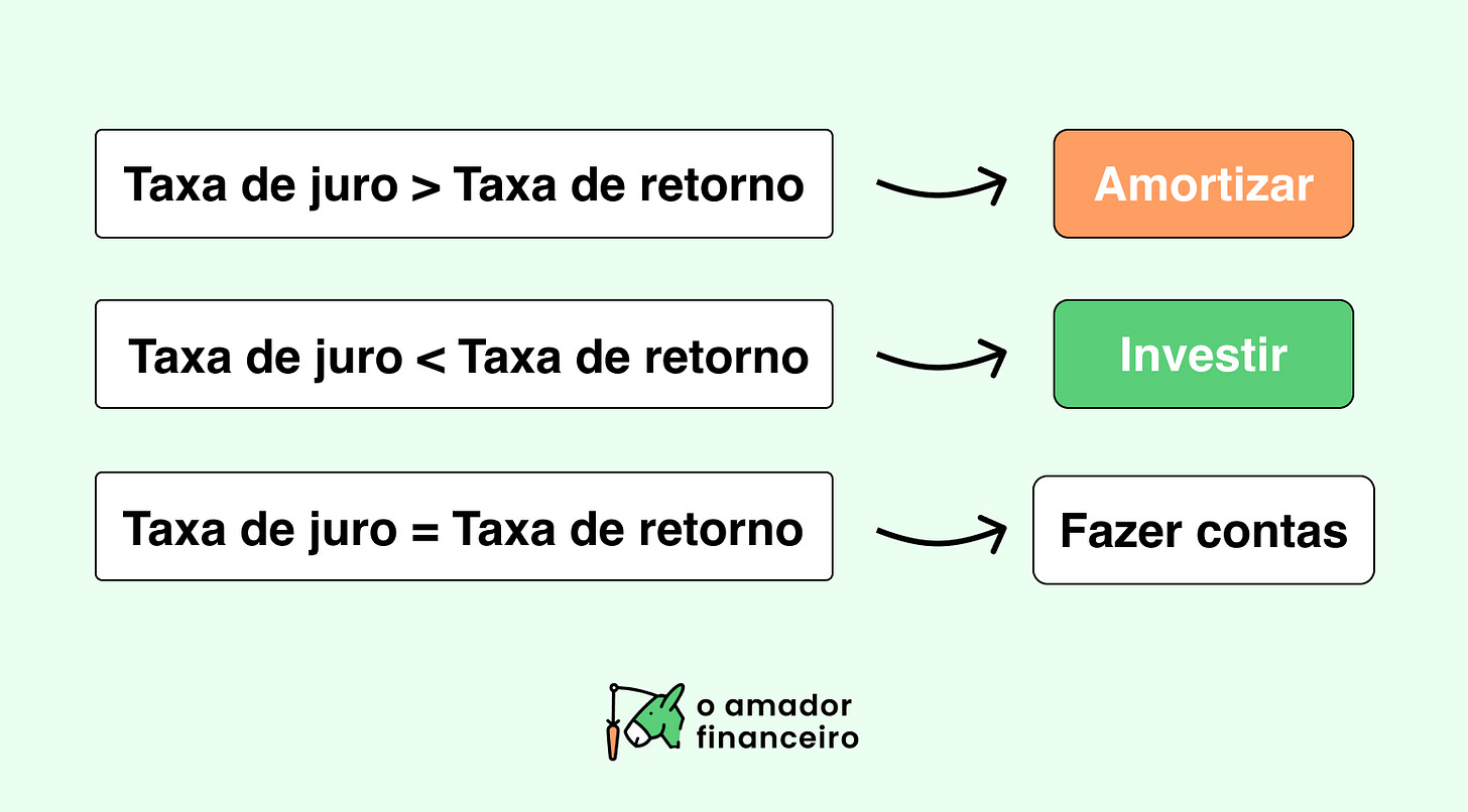 Regra geral ao comparar Amortizar vs Investir
