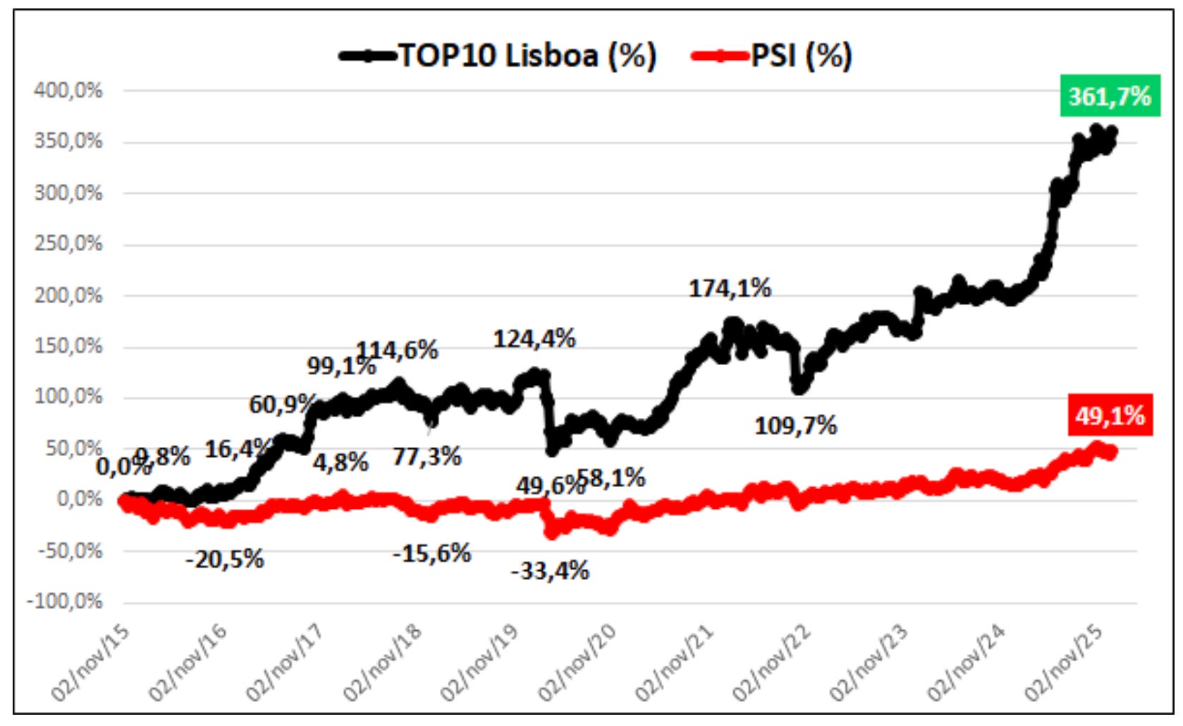 Para uma gestão ativa e construir um portfolio com ações europeias e americanas, dispomos do Borja on Stocks, que é um serviço com mais de uma década, e tem oferecido um retorno médio anual de 15% aos seus subscritores.
